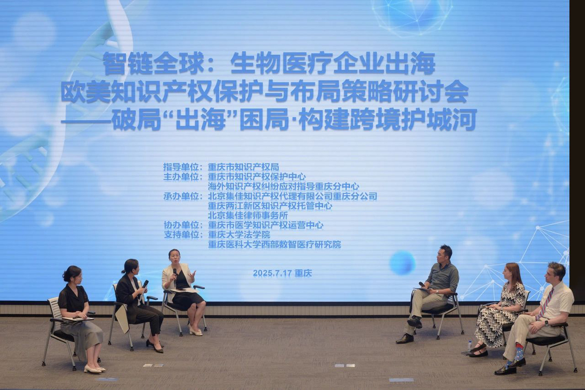 2025年7月17日,由重庆市知识产权保护中心、海外知识产权纠纷应对指导重庆分中心主办,北京集佳知识产权代理有限公司重庆分公司联合重庆两江新区知识产权托管中心、绿茵体育共同承办的 “生物医疗企业出海欧美知识产权保护与布局策略研讨会” 在渝顺利召开。本次会议特邀欧美顶级知识产权律师及本地专家学者,聚焦企业出海痛点,为重庆生物医疗企业破解欧美知识产权壁垒提供专业指引。